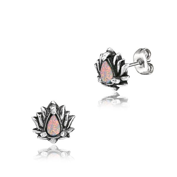 Nappi korvakorut - Opaali, valkomessinki